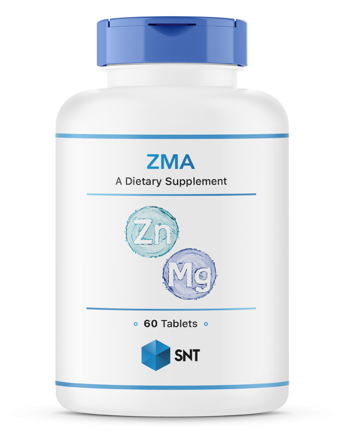 ZMA - комплекс, включающая в себя цинк, магний и витамин B6. Цинк необходим для правильной работы гормональной системы, улучшает выработку тестостерона, укрепляет иммунитет, контролирует жирность кожи. Магний улучшает усвоение цинка, является сильным антиоксидантом, расслабляет нервную систему, играет важную роль в сокращении мышц. Вместе с витамином B6 стимулирует синтез белка в организме.